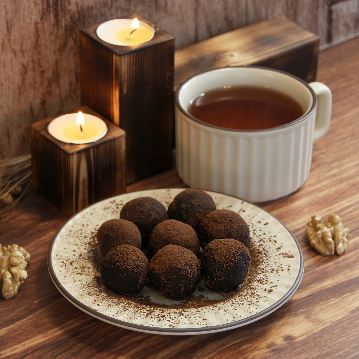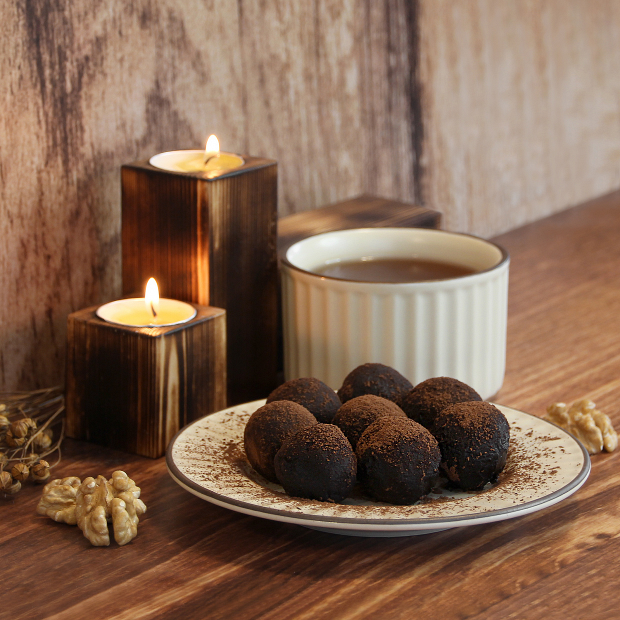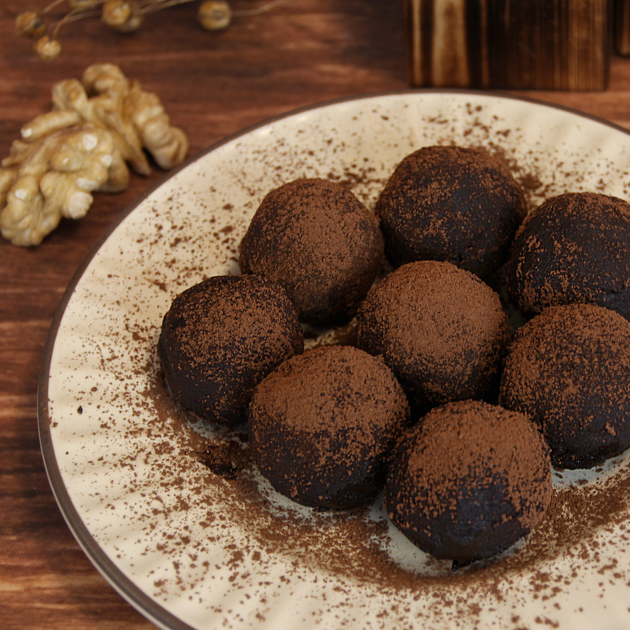 Из полученной массы лепим круглые конфеты и обваливаем в какао.